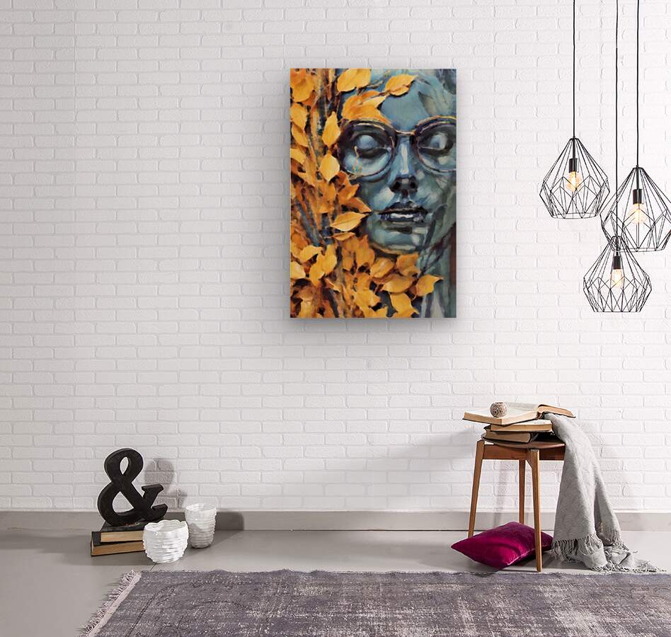 Discover the enchanting duality of emotions in 'Golden Blues.' This captivating piece features a woman's visage bathed in serene blue, juxtaposed with golden leaves, reflecting how we may feel 'blue' within but project a 'golden' exterior. Explore the complexity of human emotions through art. #ArtisticExpression #InnerFeelings #Art #WallDecor #WallArt #ContemporaryArt #ArtbyBuck