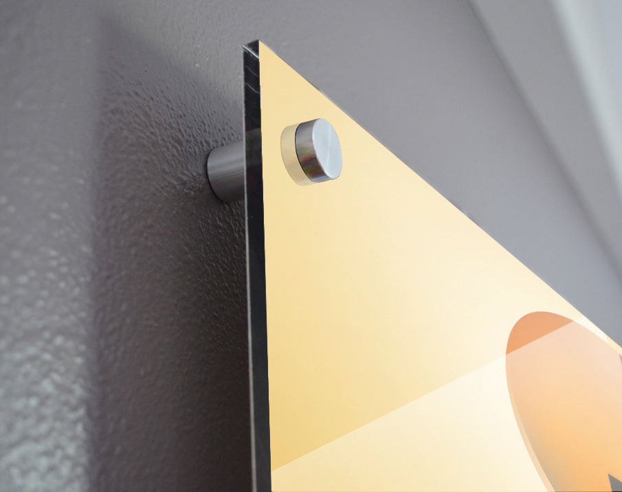 Impression sur acrylique avec entretoises ( cylindres métalliques )