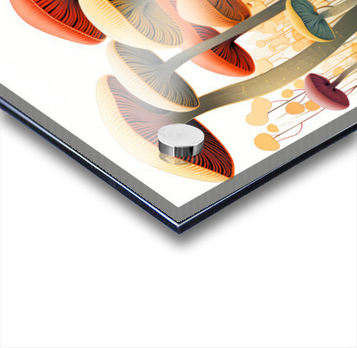 Imprimé jusqu’au bord et prêt à être accroché, avec 4 cylindres (entretoises) en aluminium ( les vis murales sont incluses )