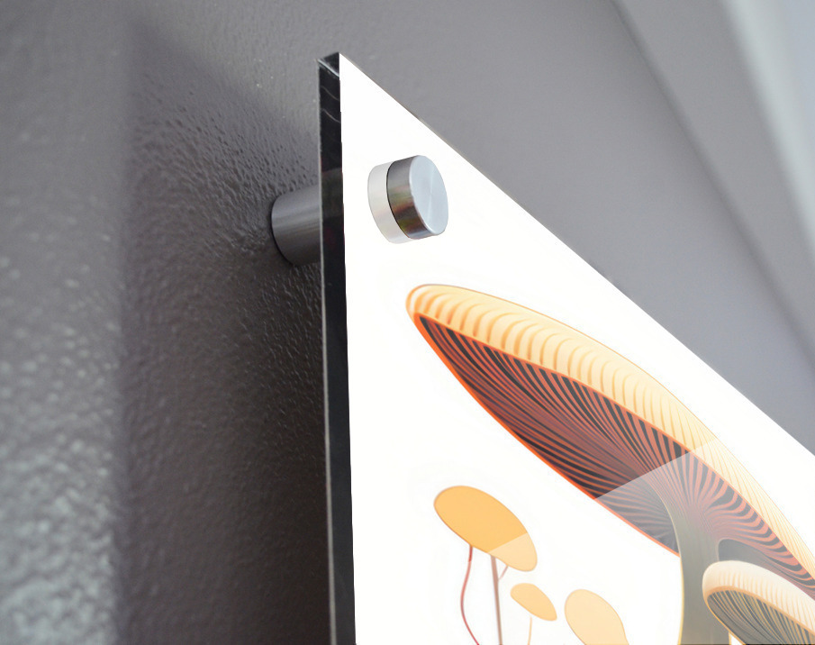 Impression sur acrylique avec entretoises ( cylindres métalliques )