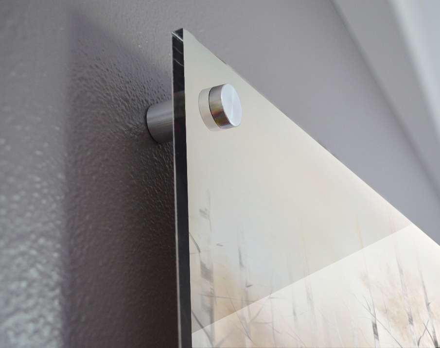 Impression sur acrylique avec entretoises ( cylindres métalliques )