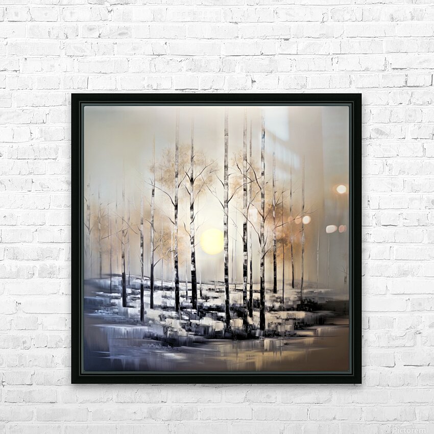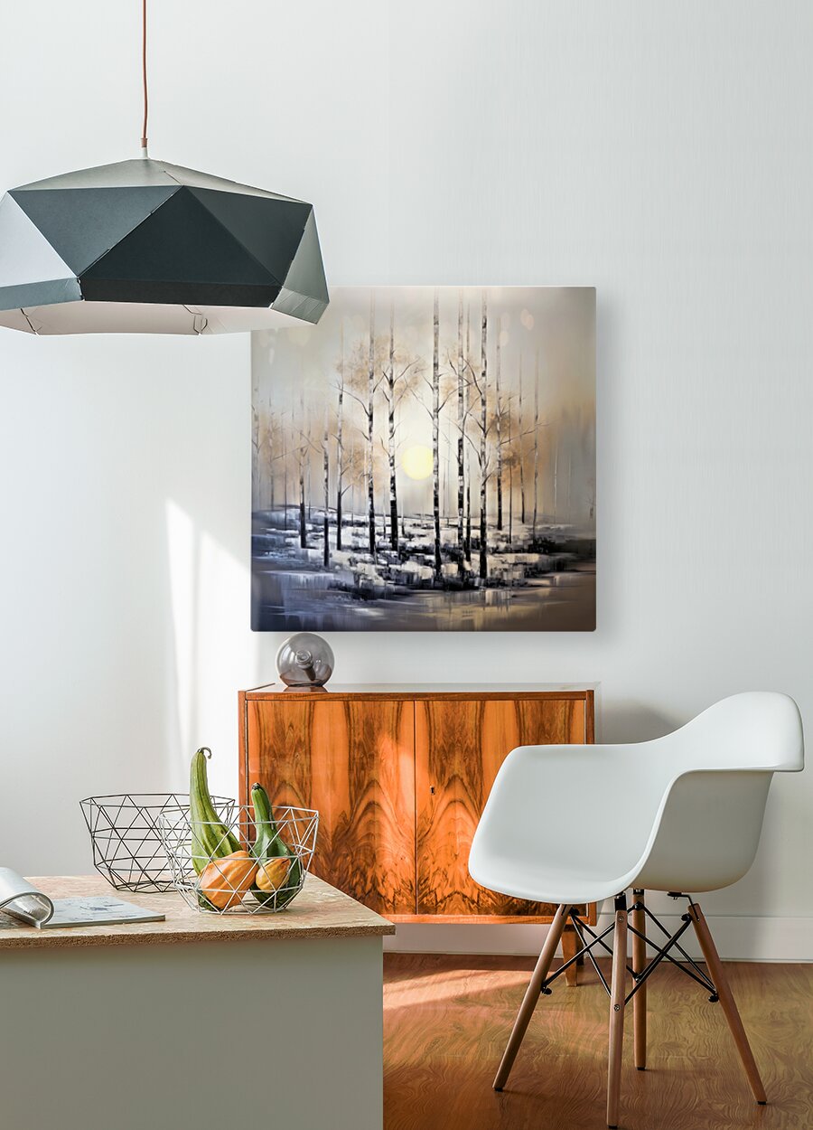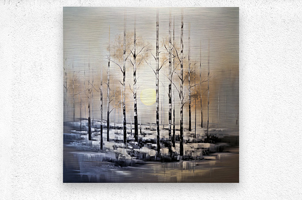 Birch Sunrise  Impression métal HD avec cadre flottant sur le dos