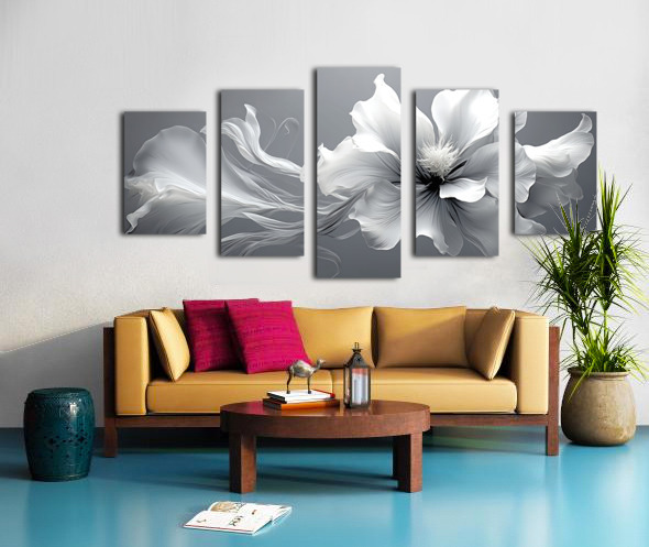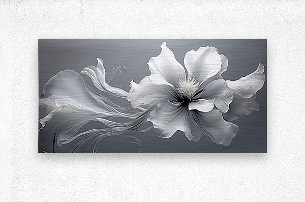 Celebrating the Ethereal: 'Living on a Breath' — An exquisite masterpiece capturing the essence of a delicate white flower, adorned with enchanting black accents, suspended in the air. No stems, just long, flowing petals that dance like dreams, all against a serene light gray canvas. A canvas that breathes emotion. #LivingOnABreath #EtherealArt #FloralDreams #EmotionalCanvas #DelicateBeauty #ArtisticElegance #DreamlikePetals #ExquisiteMasterpiece #ArtOfEmotion #Art