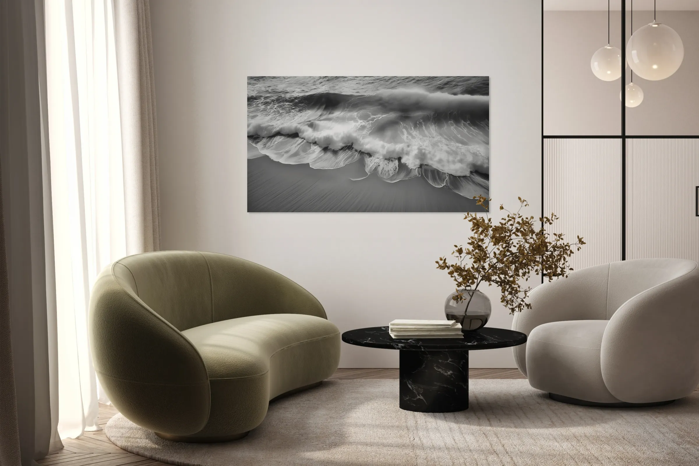 Find solace in the flow of "Some Reflection." This black and white masterpiece captures the beauty of waves coming to shore, reminding us of life'...[+]
